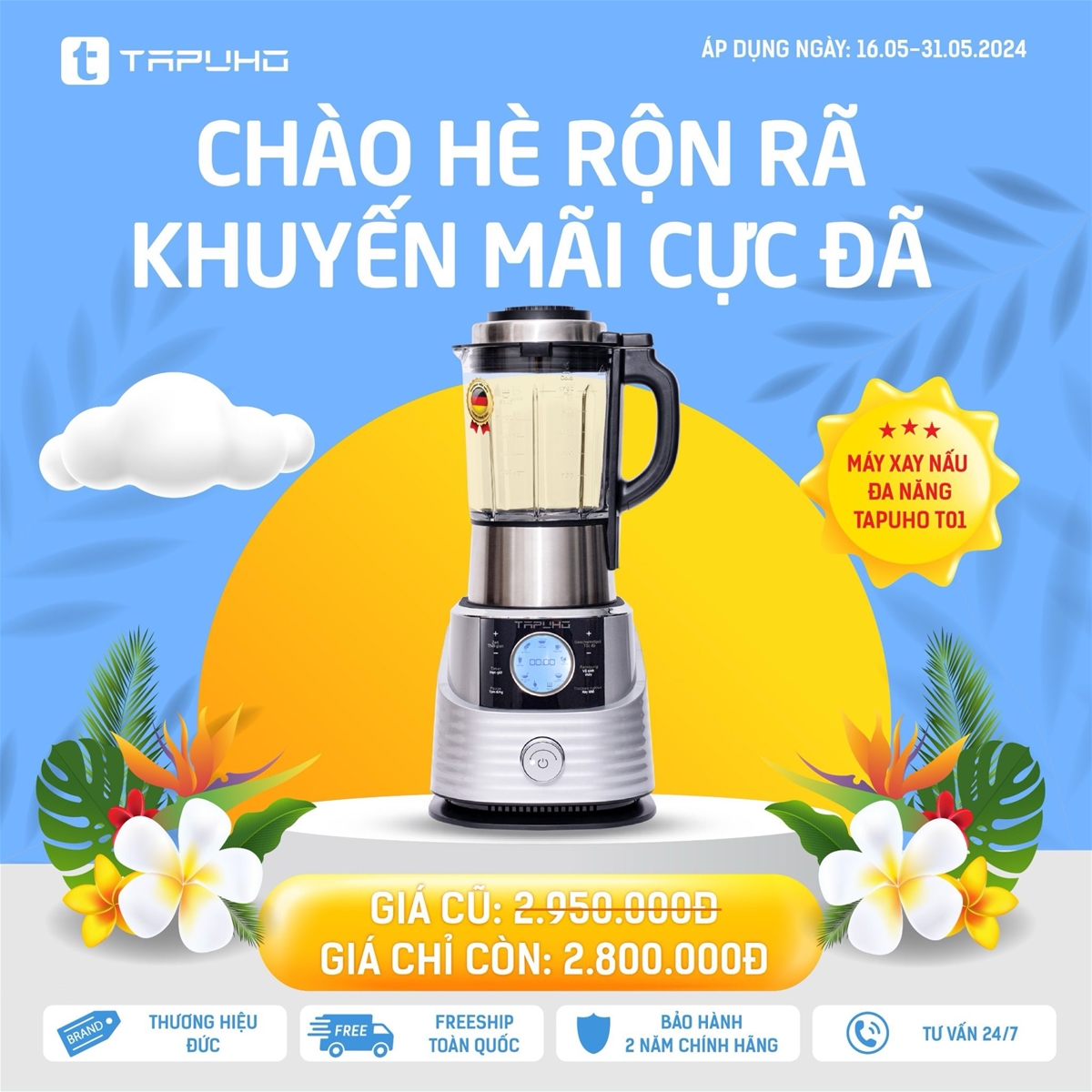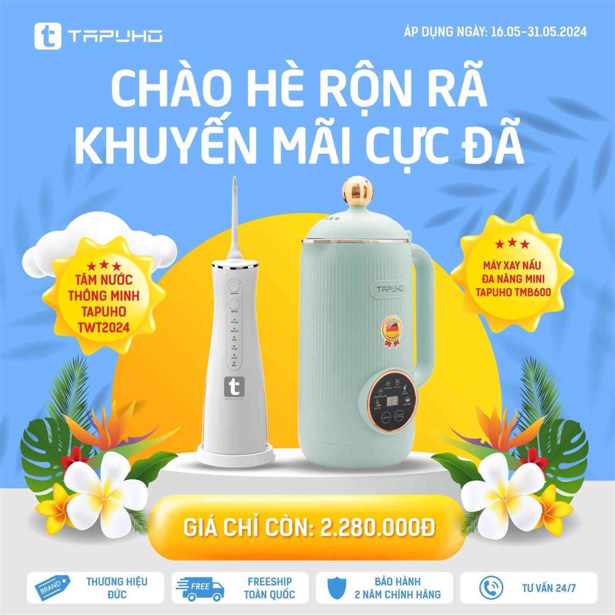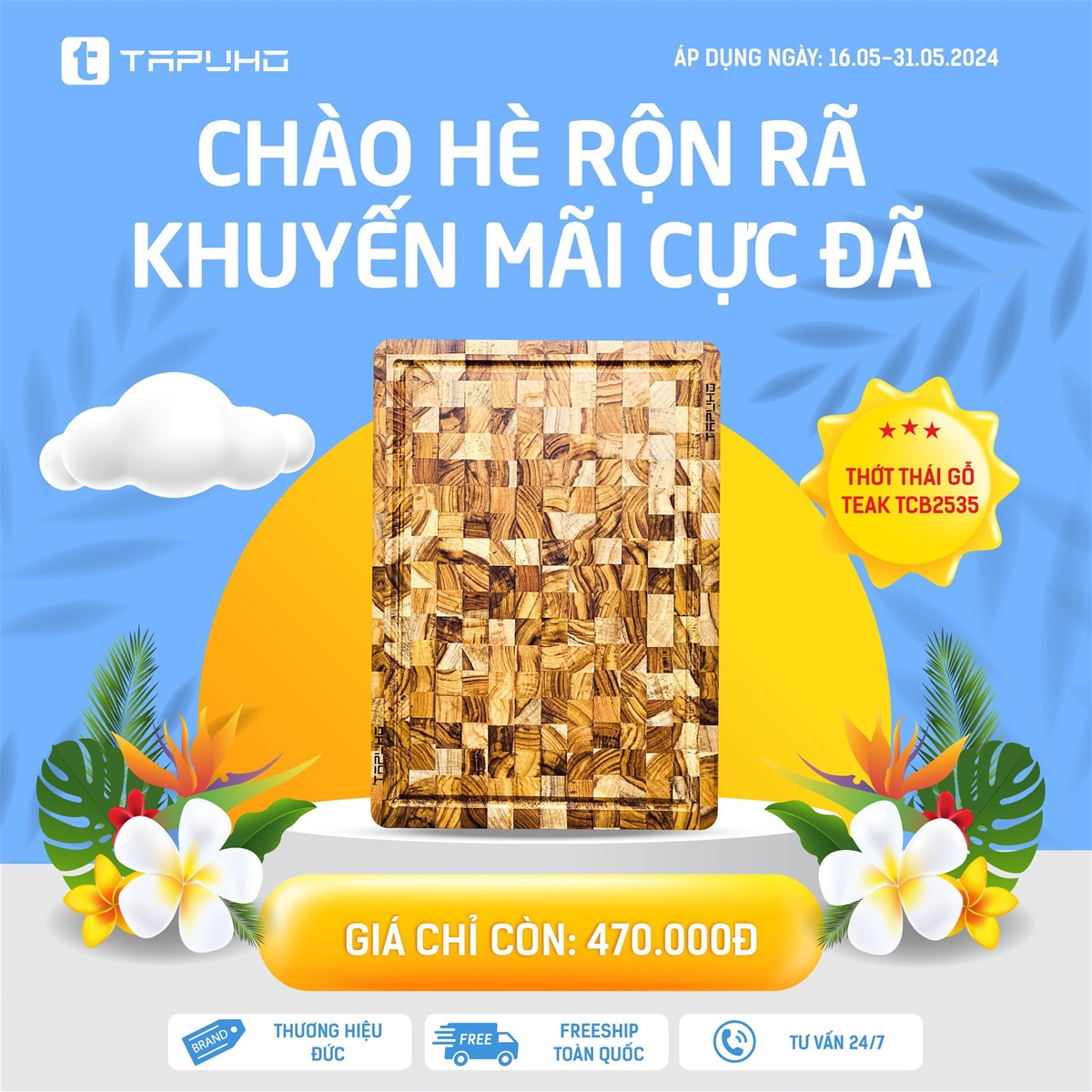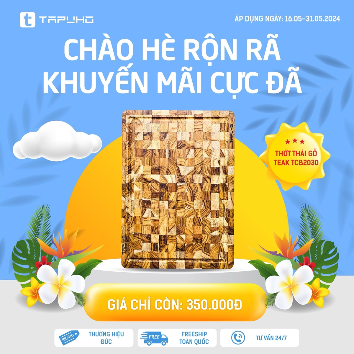 17/05/2024Để chào đón mùa hè 2024, Tapuho Việt Nam đang triển khai chương trình khuyến mại “Chào hè rộn rã – Khuyến mãi cực đã”. Đây là cơ hội tuyệt vời cho khách hàng được sở hữu các sản phẩm chất lượng của Tapuho với mức giá ưu đãi nhất. Chương trình diễn ra từ ngày 16.05.2024 – 31.05.2024!