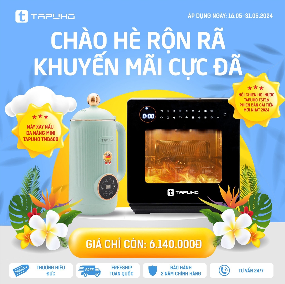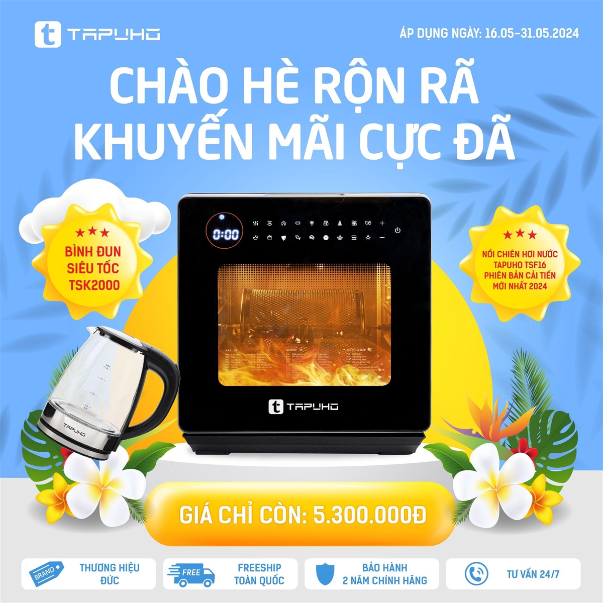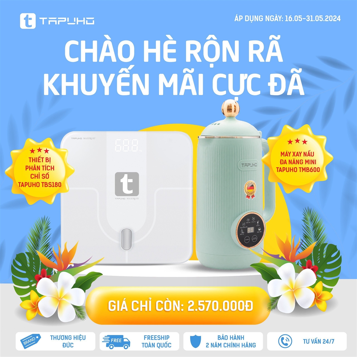 17/05/2024Để chào đón mùa hè 2024, Tapuho Việt Nam đang triển khai chương trình khuyến mại “Chào hè rộn rã – Khuyến mãi cực đã”. Đây là cơ hội tuyệt vời cho khách hàng được sở hữu các sản phẩm chất lượng của Tapuho với mức giá ưu đãi nhất. Chương trình diễn ra từ ngày 16.05.2024 – 31.05.2024!