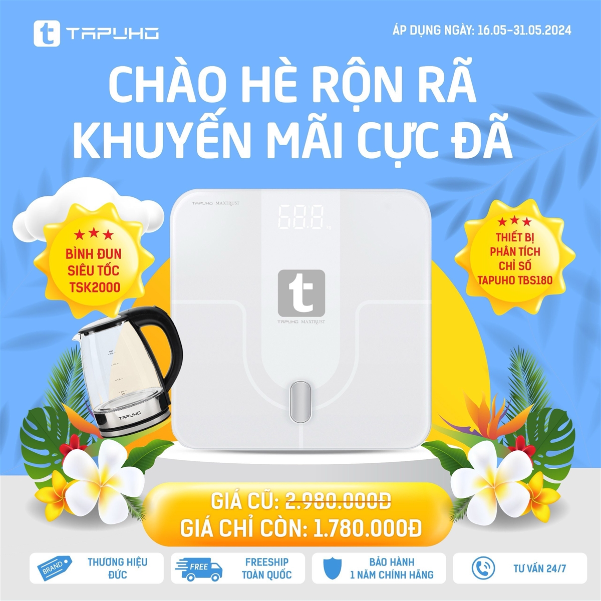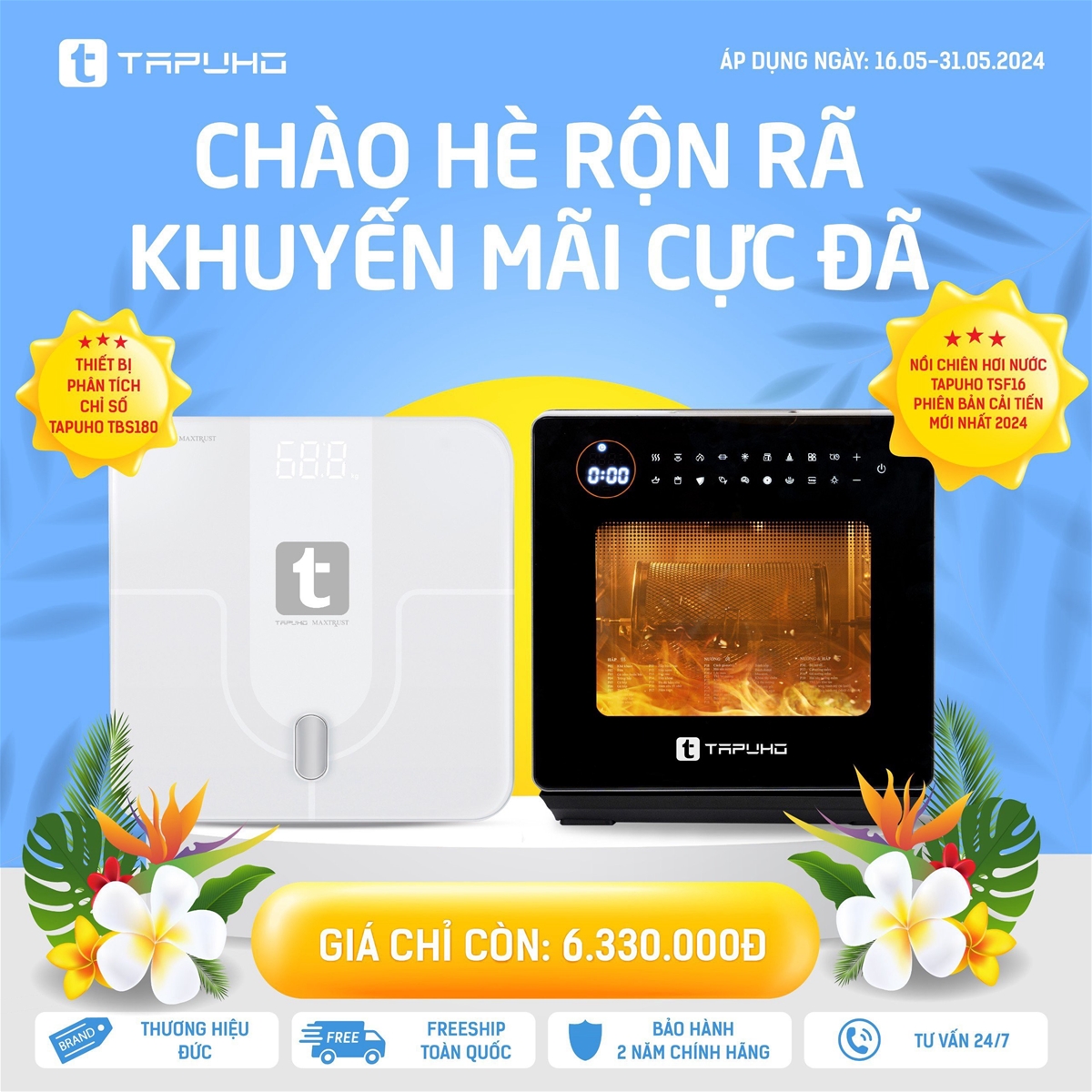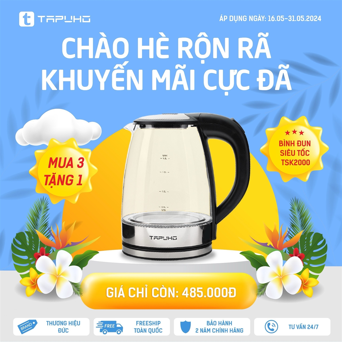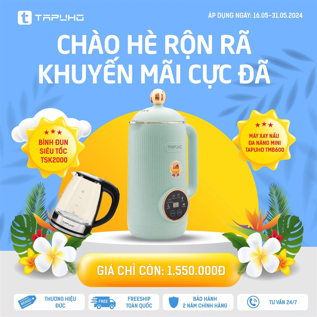 17/05/2024Để chào đón mùa hè 2024, Tapuho Việt Nam đang triển khai chương trình khuyến mại “Chào hè rộn rã – Khuyến mãi cực đã”. Đây là cơ hội tuyệt vời cho khách hàng được sở hữu các sản phẩm chất lượng của Tapuho với mức giá ưu đãi nhất. Chương trình diễn ra từ ngày 16.05.2024 – 31.05.2024!