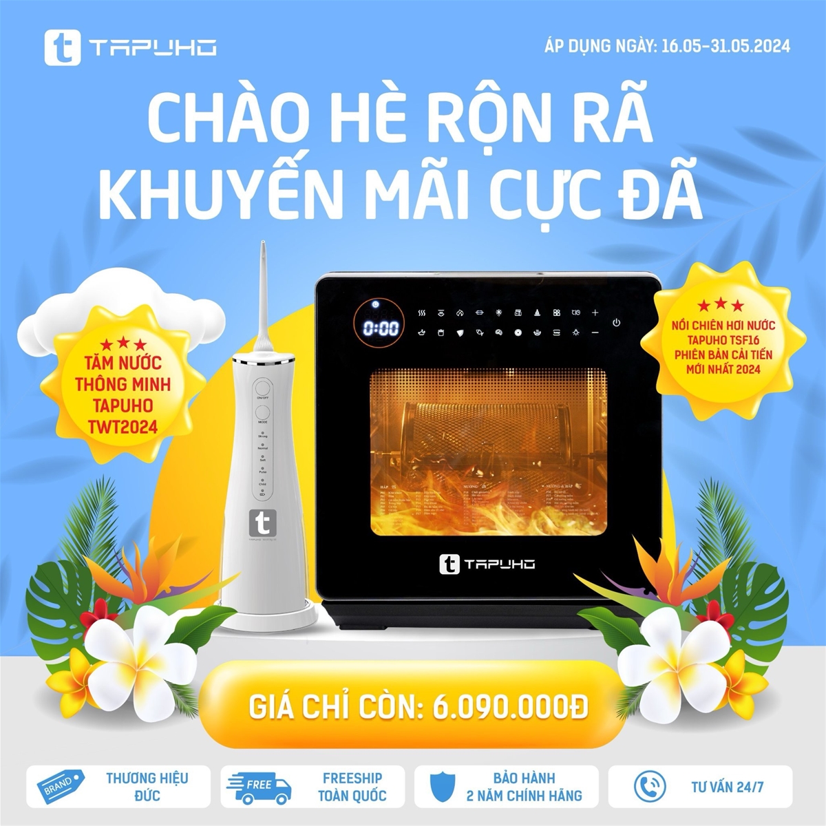3. Combo Nồi chiên hơi nước Tapuho TSF16 + Tăm nước thông minh Tapuho TWT2024