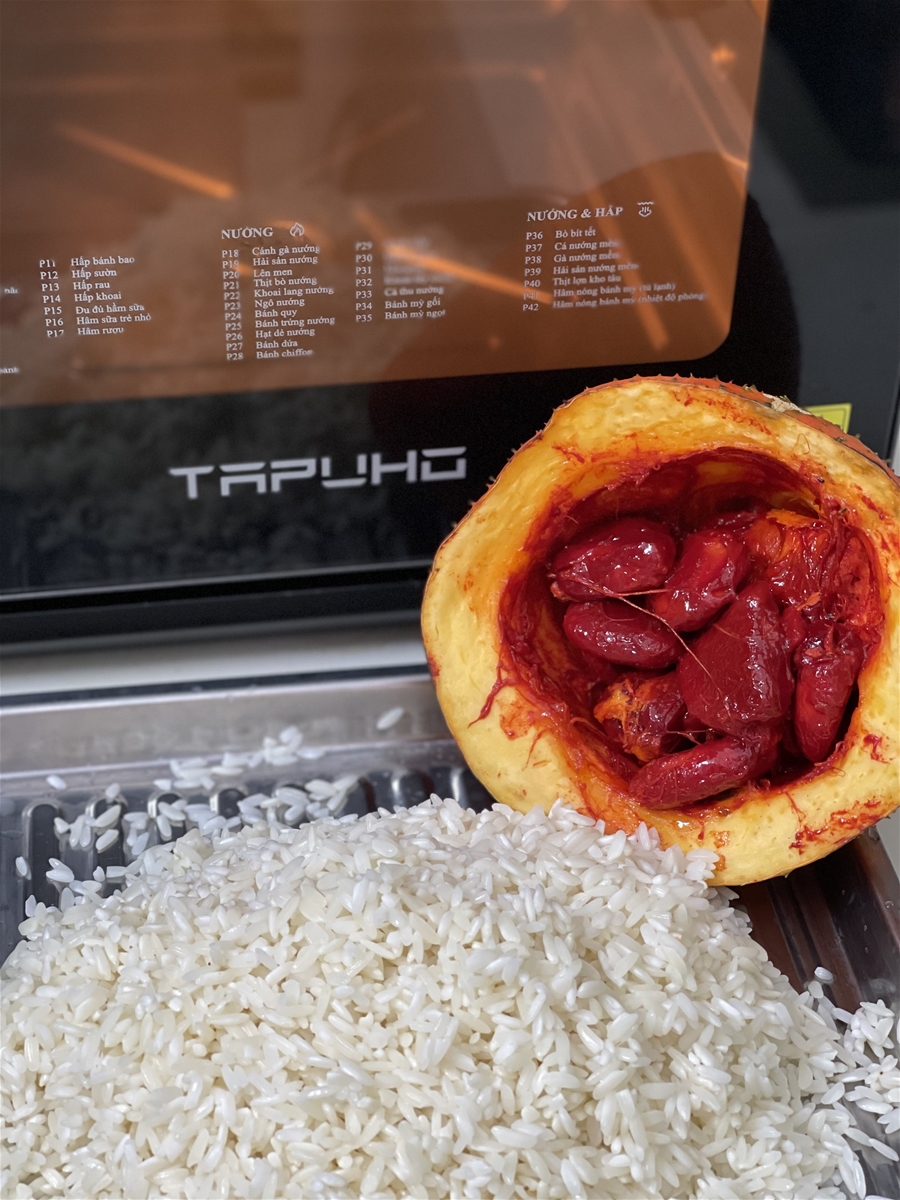 Hấp xôi gấc bằng nồi chiên hơi nước Tapuho