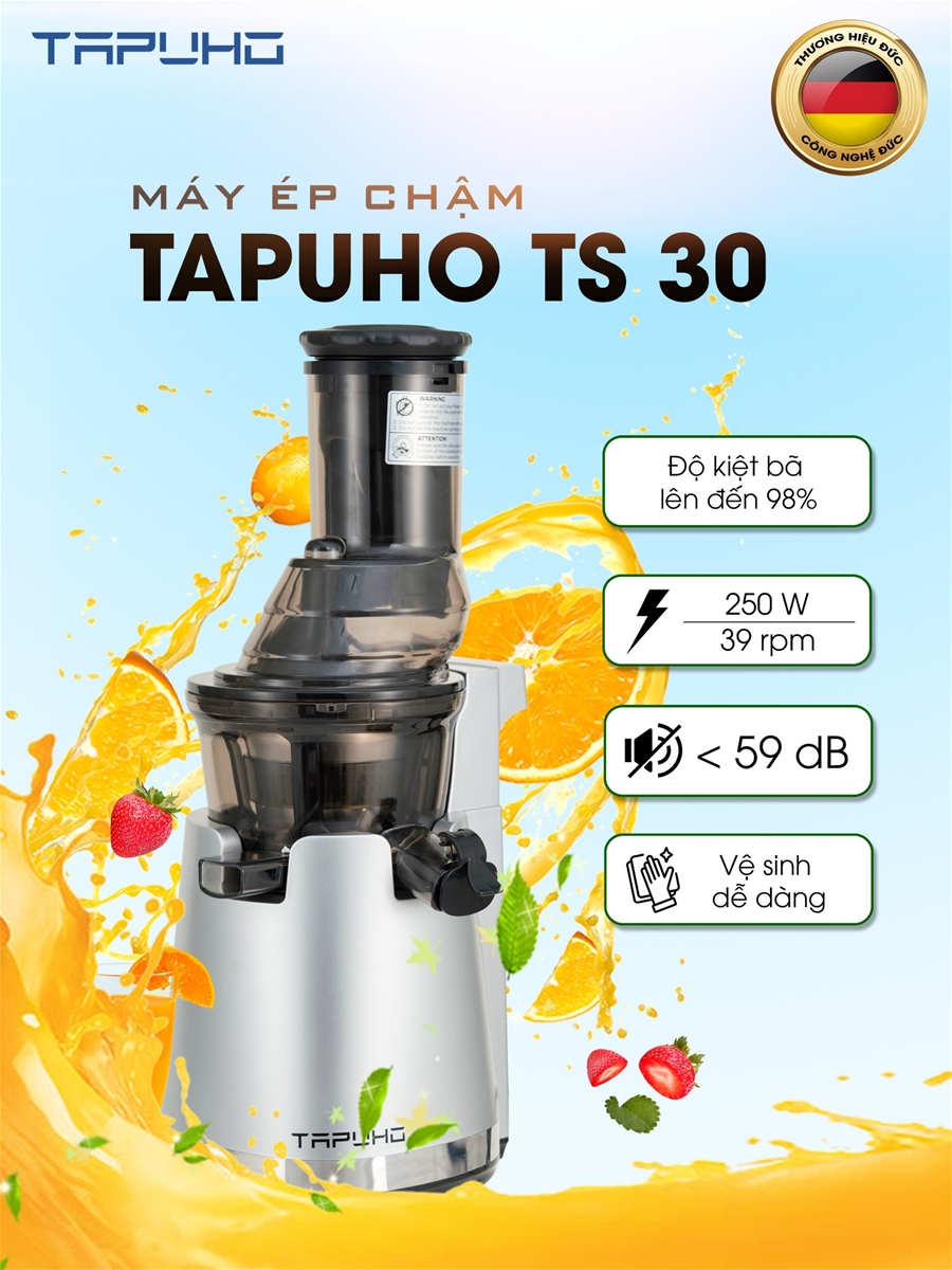 Với những ưu điểm nổi trội như trên, các dòng máy ép hoa quả của Đức đã được người tiêu dùng Việt Nam rất ưa thích. Nếu như các bạn chưa biết nên lựa chọn loại máy nào chất lượng và hợp túi tiền. Hãy lựa chọn ngay dòng máy ép hoa quả TS30 của Tapuho. Đây cũng là dòng máy ép chậm được đánh giá rất cao trên thị trường.