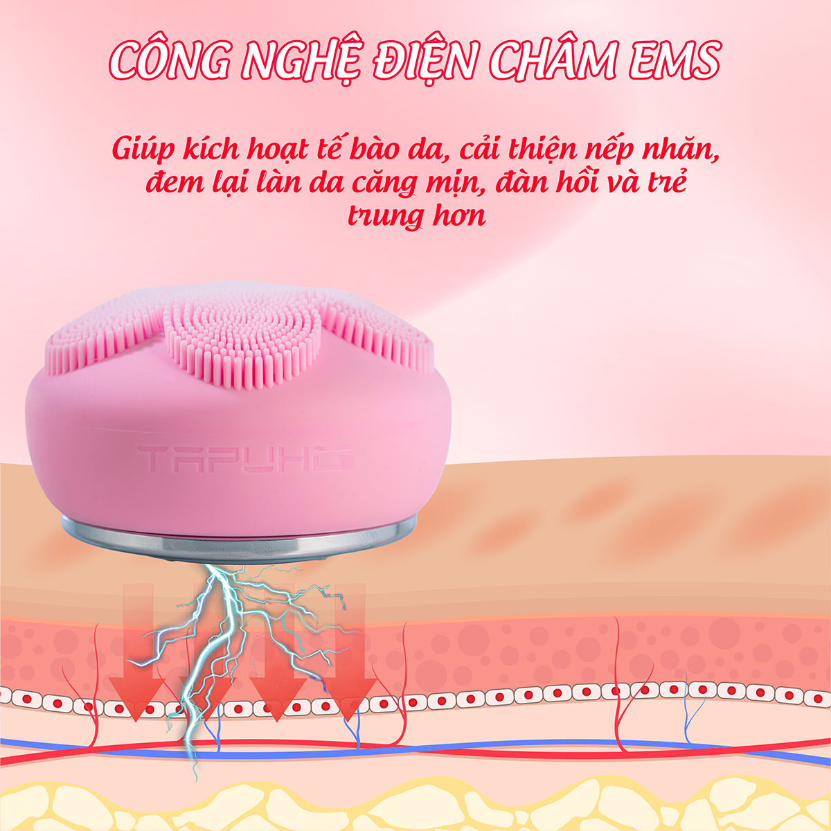 Máy rửa mặt thông minh TAPUHO CM22 có sóng rung tần số cao 9000 lần/phút có thể làm sạch bụi bẩn, dầu thừa và cặn trang điểm trên da mặt tới 99%.