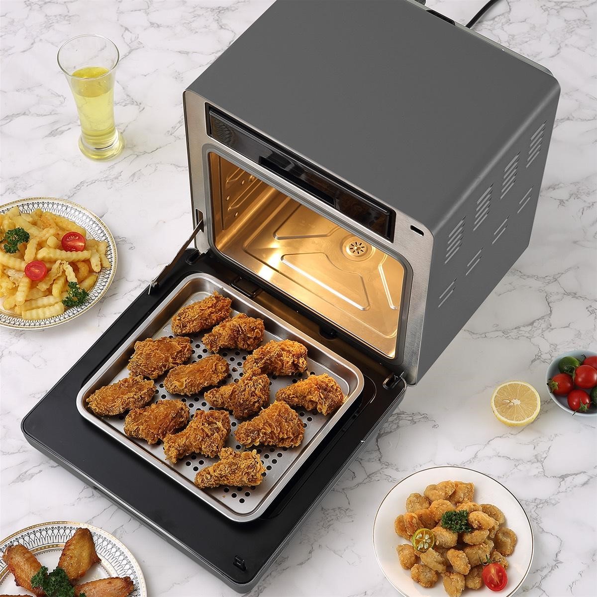 Sản phẩm có tổng công suất lên tới 2800w. Kết hợp với hệ thống 3 quạt gió sẽ giúp tản đều nhiệt giúp cho các món ăn chín đều mà không cần lật trở. Thực phẩm sẽ chín mềm ngọt bên từ bên trong.