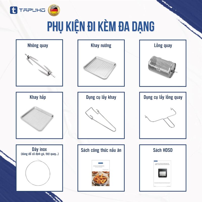 Nồi chiên không dầu hơi nước Tapuho TSF16 với tính năng đa dạng đáp ứng nhu cầu nấu nướng hàng ngày.
