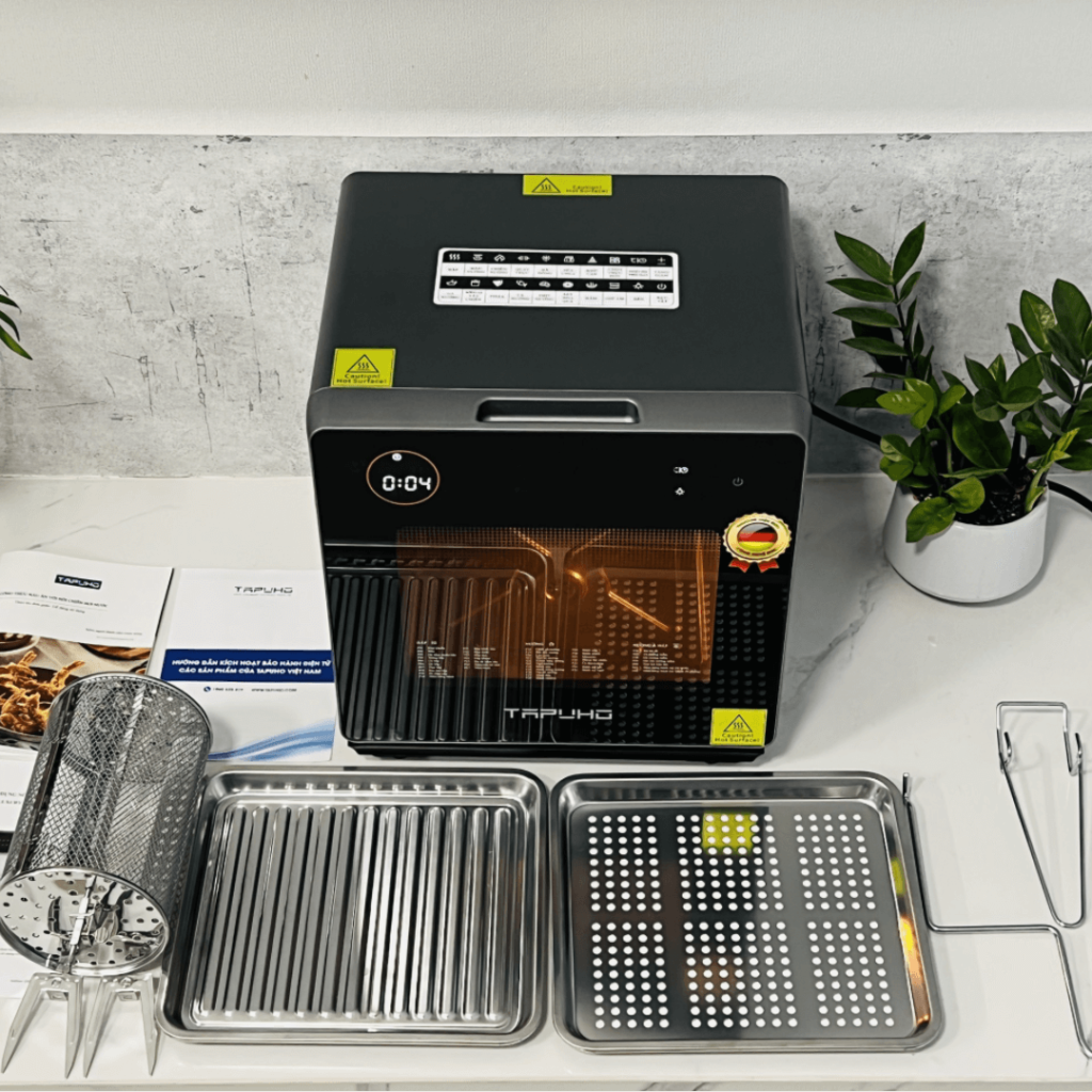 - Nồi chiên hơi nước của Tapuho sở hữu công nghệ chế biến thực phẩm hiện đại nhất hiện nay. Với chế độ chiên không dầu Rapid Air có khả năng loại bỏ đến 96% lượng mỡ và dầu thừa trong thực phẩm. Và chế độ hấp siêu nhiệt Steam Pro sẽ giúp làm chín thức ăn từ bên trong đảm bảo dinh dưỡng cho người sử dụng.
