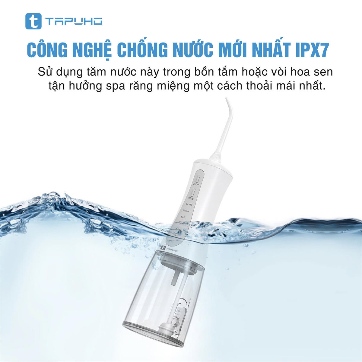 Chế độ đa dạng: Tăm nước TAPUHO TWT2025 gồm 5 chế độ tương đương với 5 áp lực nước khác nhau, phù hợp nhiều độ tuổi từ trẻ em đến người lớn và các đối tượng có nhu cầu sử dụng khác nhau: